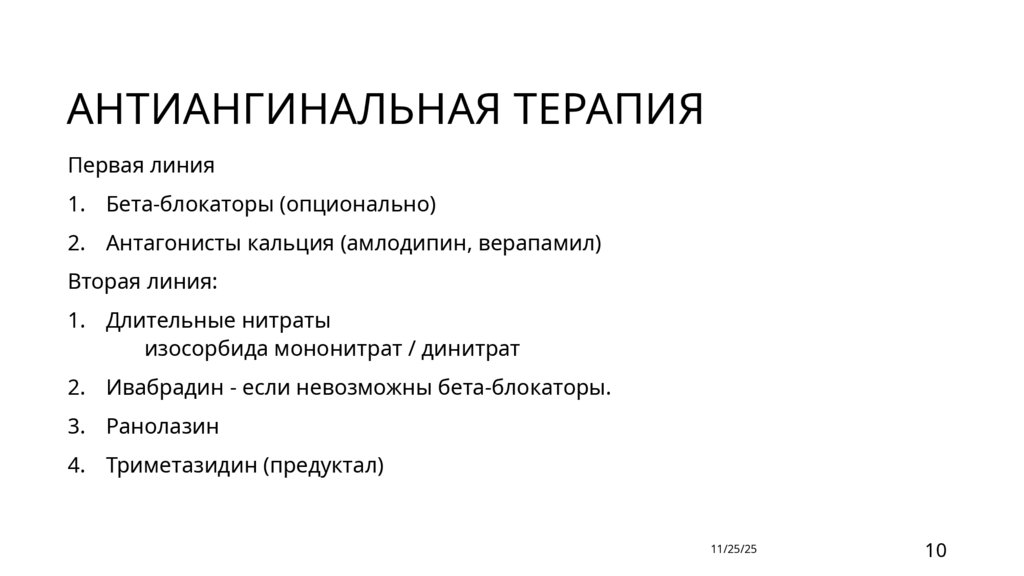АНТИАНГИНАЛЬНАЯ ТЕРАПИЯПервая линия