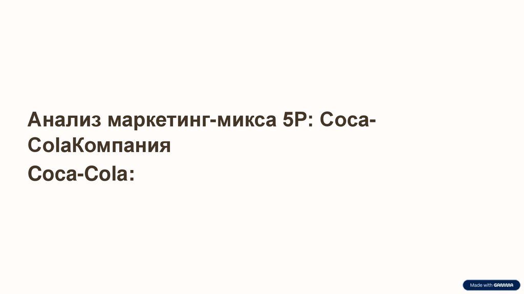 Анализ маркетинг-микса 5P: CocaColaКомпанияCoca-Cola: