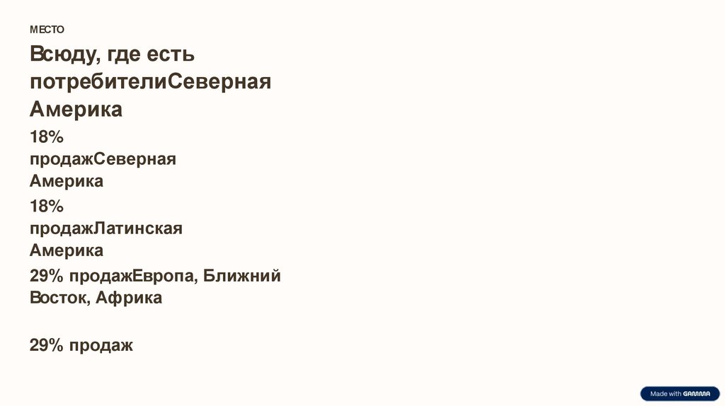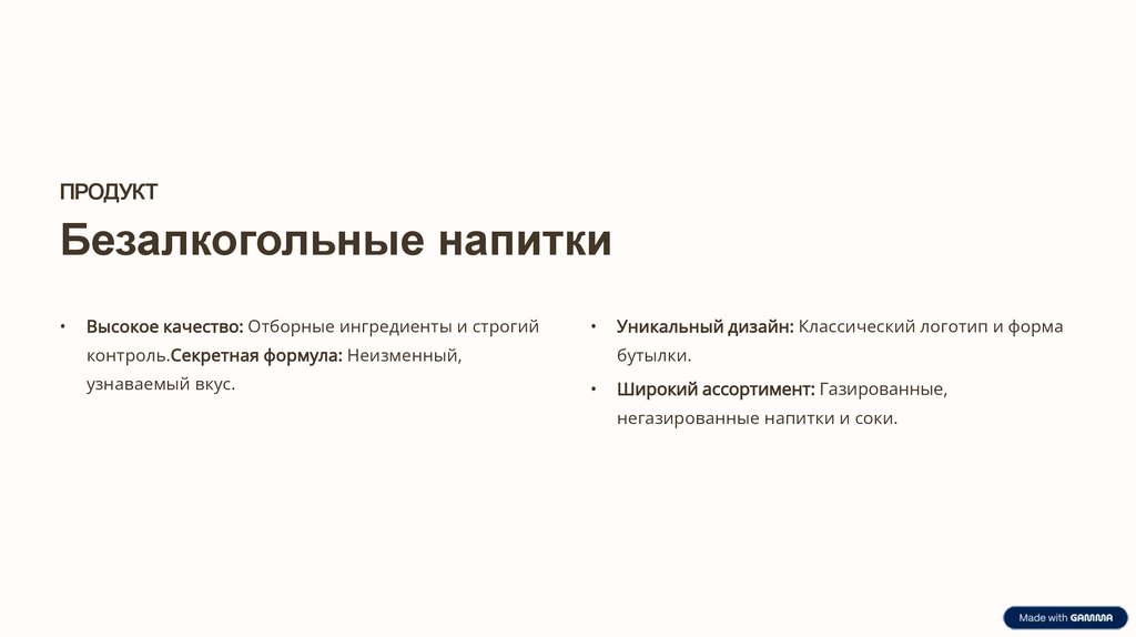 кампании.Широкая сетьГлобальное присутствие и дистрибуция.Финансовые показателиСтабильный рост и
