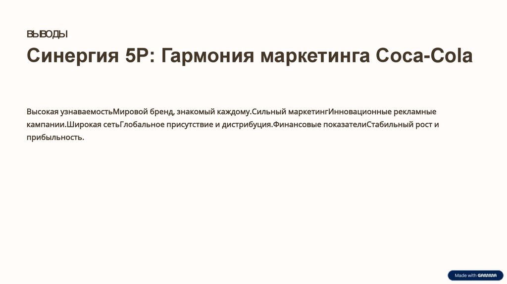ВЫВОДЫСинергия 5P: Гармония маркетинга Coca-Cola