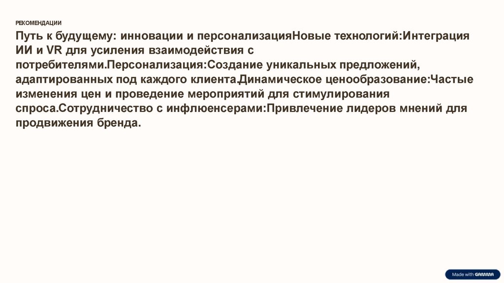 РЕКОМЕНДАЦИИПуть к будущему: инновации и персонализацияНовые технологий:Интеграция