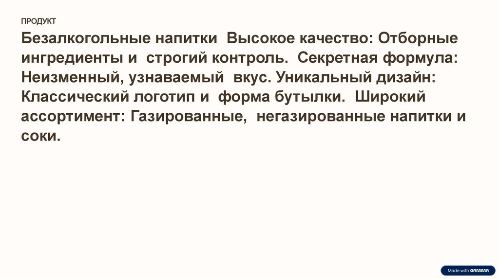 ПРОДУКТБезалкогольные напитки Высокое качество: Отборные