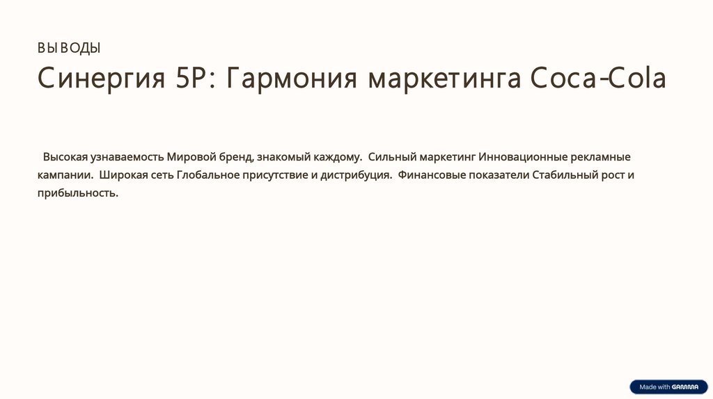 В Ы В ОДЫСинергия 5P : Гармония маркетинга Coca-Cola