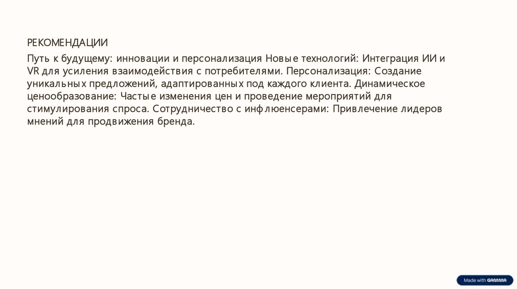 РЕКОМЕНДАЦИИПуть к буд ущему: инновации и персонал изация Нов ы е технол огий: Интеграция ИИ и