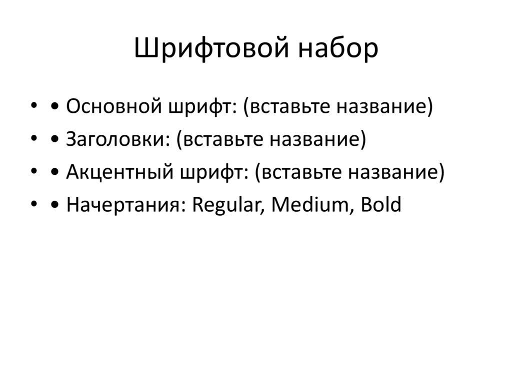 Шрифтовой набор• • Основной шрифт: (вставьте название)