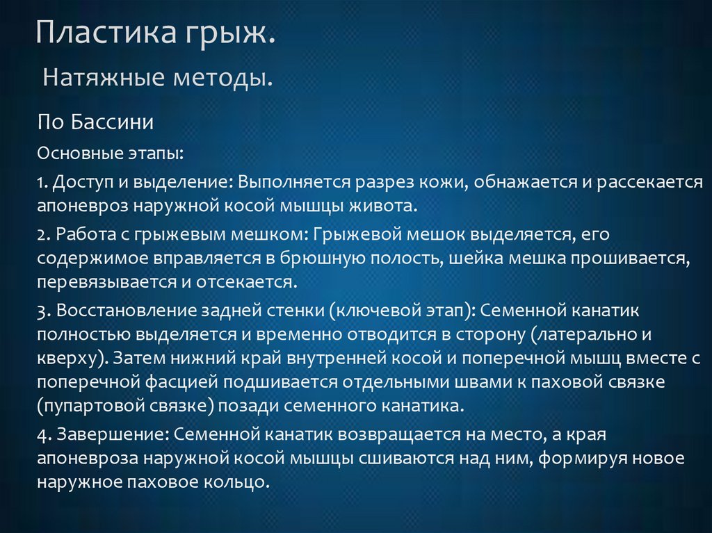 Существует два основных подхода к ненатяжной пластике:открытые методы (например, Лихтенштейн) и минимально