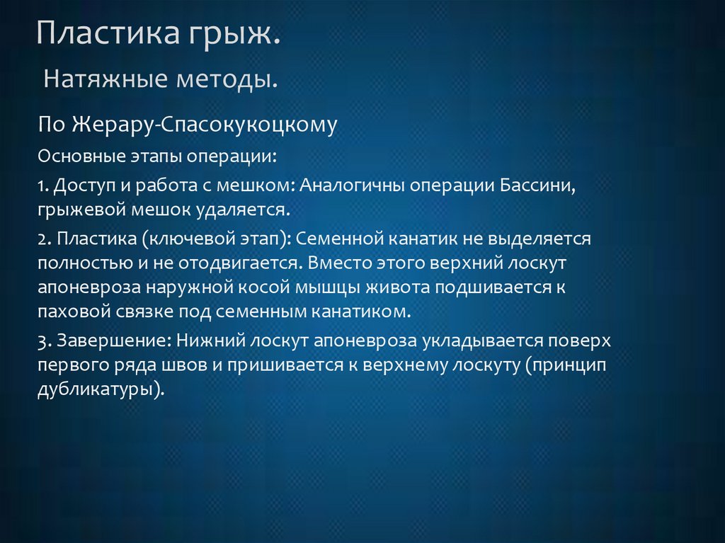 По Жерару-СпасокукоцкомуОсновные этапы операции: