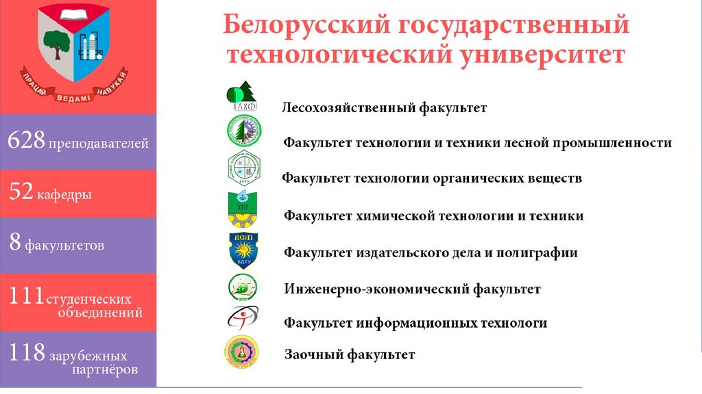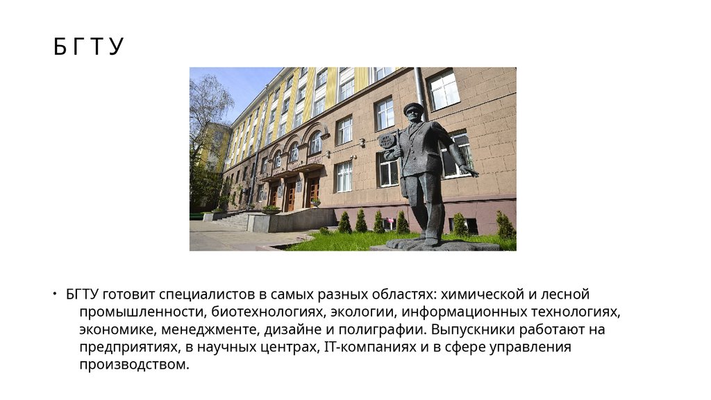 БГТУ• БГТУ готовит специалистов в самых разных областях: химической и лесной