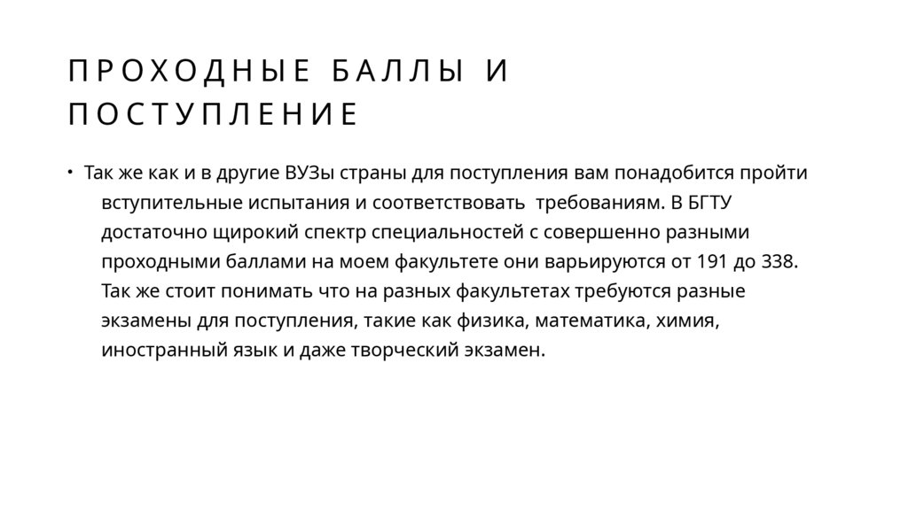 вступительные испытания и соответствовать требованиям. В БГТУ