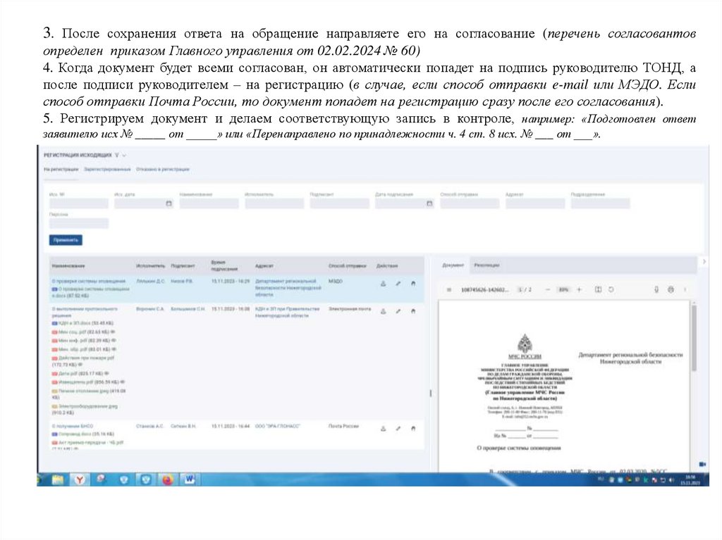 3. После сохранения ответа на обращение направляете его на согласование (перечень согласовантовопределен приказом Главного управления от 02.02.2024 № 60)