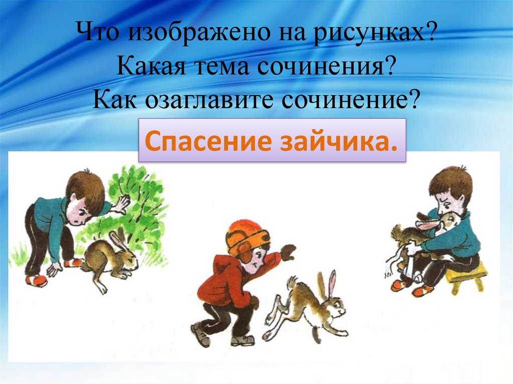 Презентация по русскому языку на тему_Обучающее сочинении по серии сюжетных картинок _Спасение зайчика__
