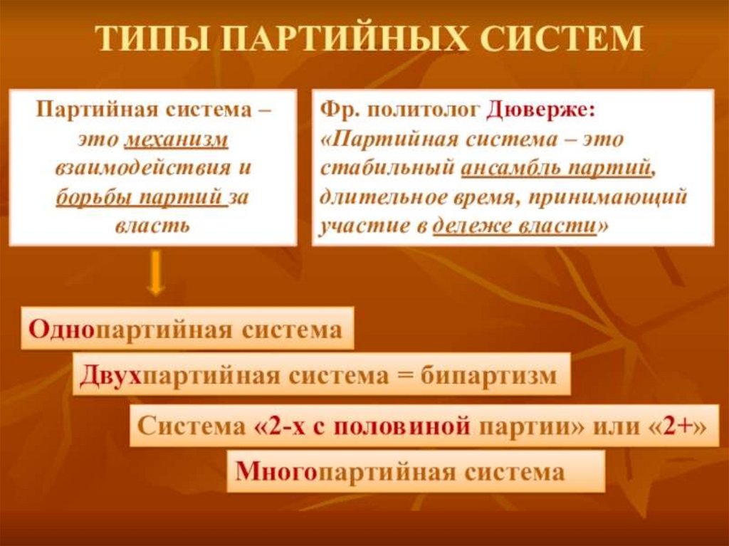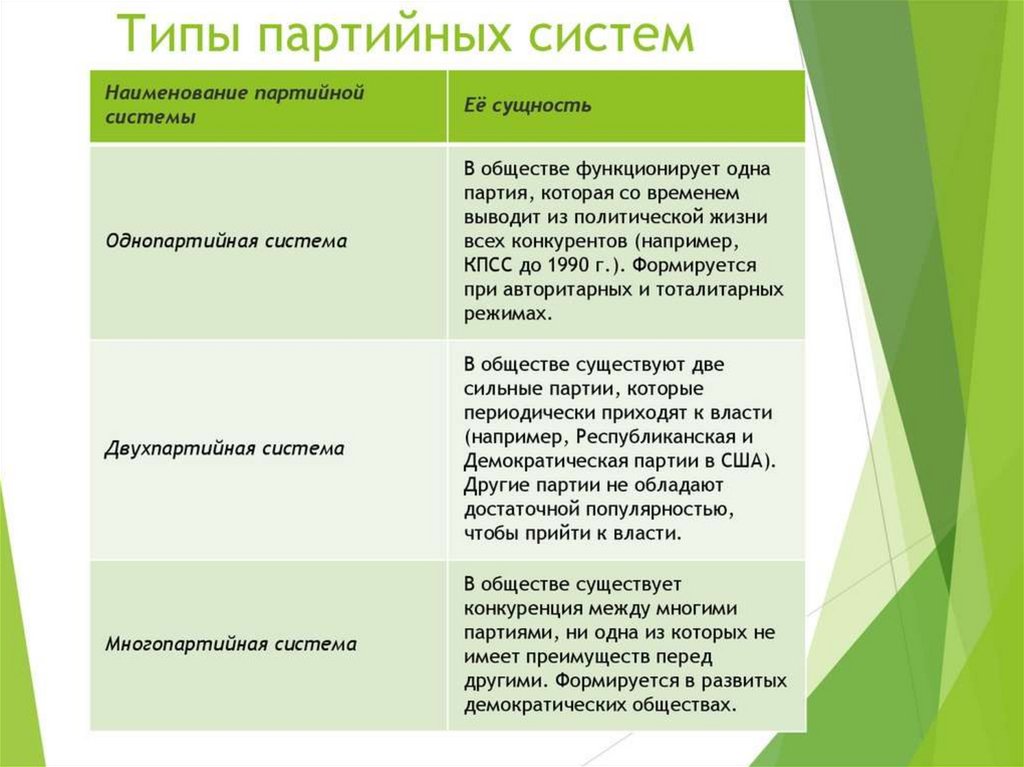 виды. Типы партийных систем.