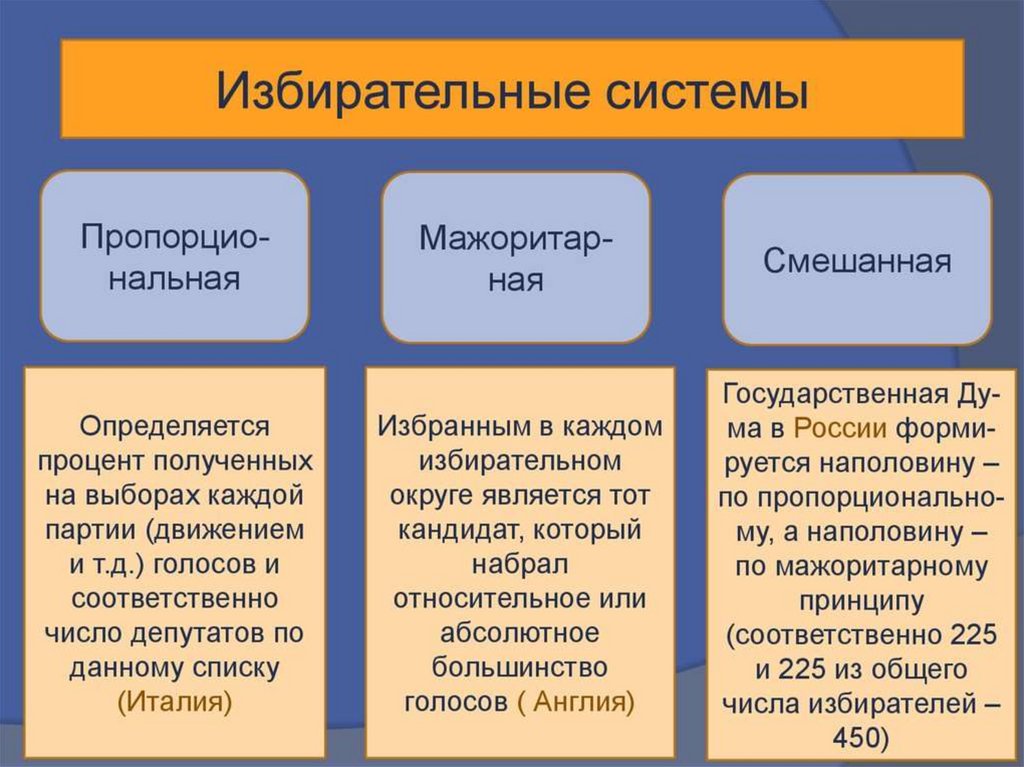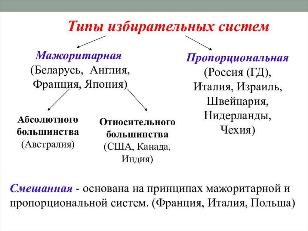 система; мажоритарная и пропорциональная избирательные