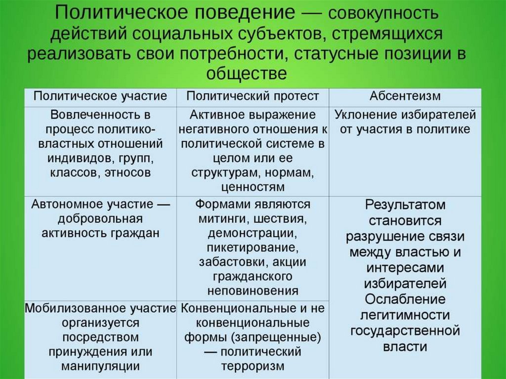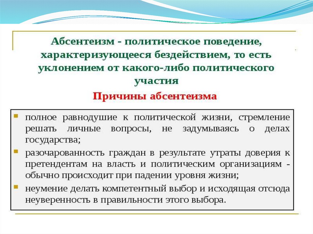 политическое поведение, политическое участие. Абсентеизм.