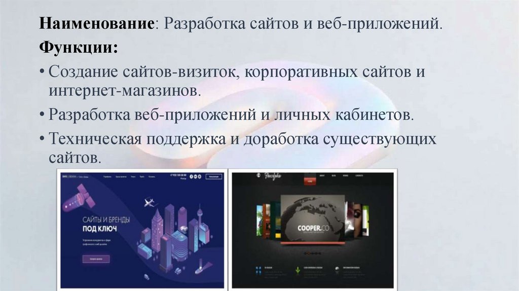 Наименование: Разработка сайтов и веб-приложений.Функции: