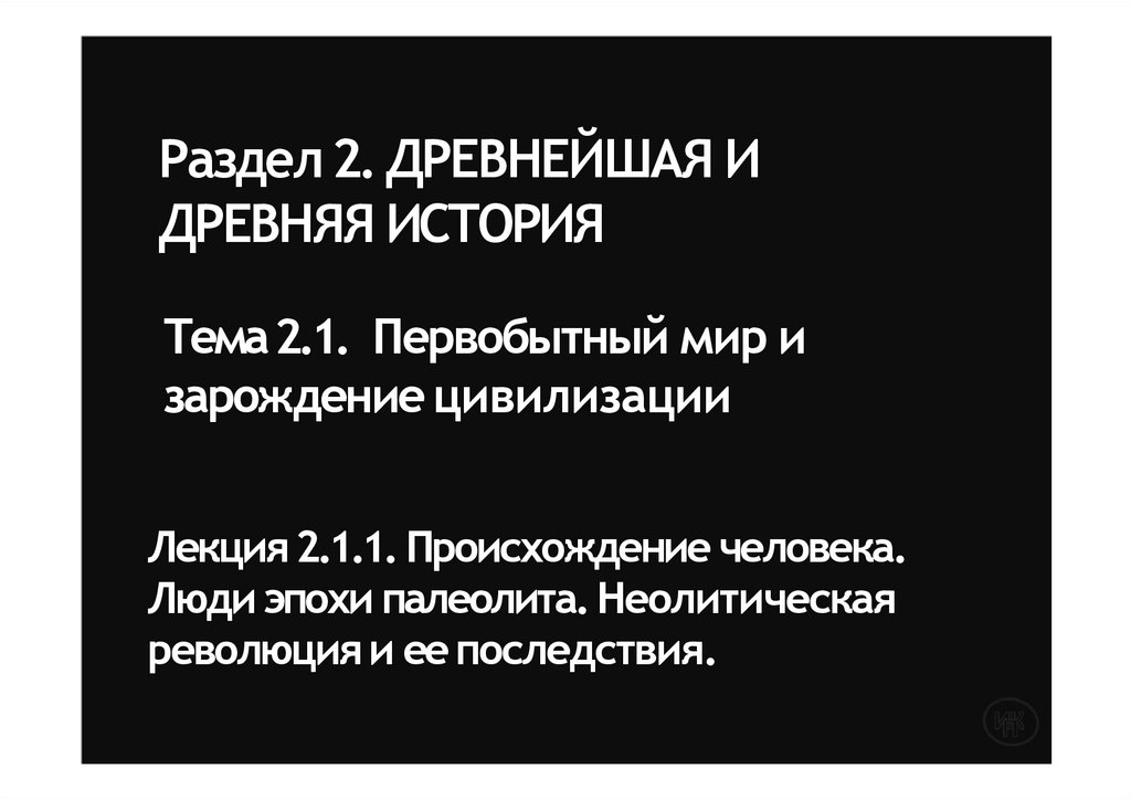 Тема2.1. Первобытный мир изарождение цивилизации