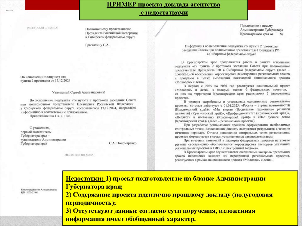 ПРИМЕР проекта доклада агентствас недостатками