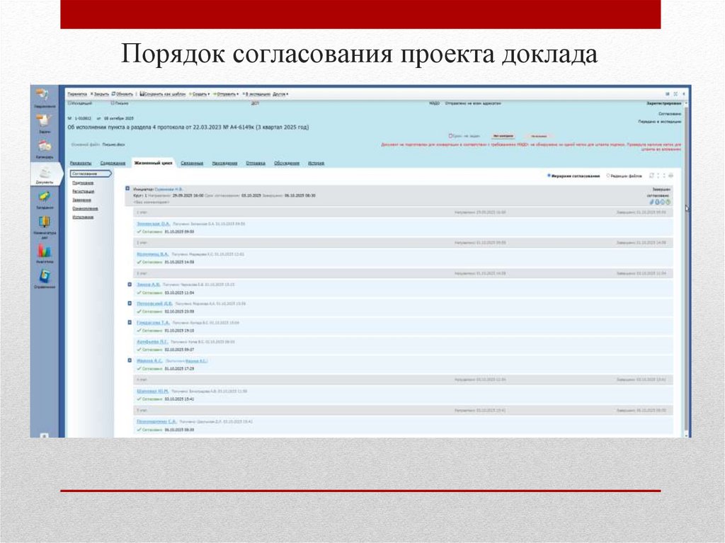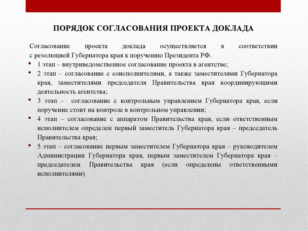 ПОРЯДОК СОГЛАСОВАНИЯ ПРОЕКТА ДОКЛАДАСогласование