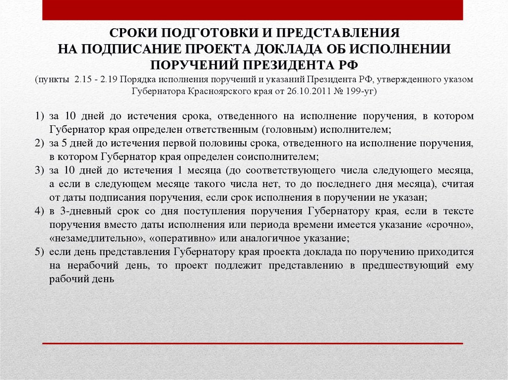 5) если день представления Губернатору края проекта доклада по поручению приходится