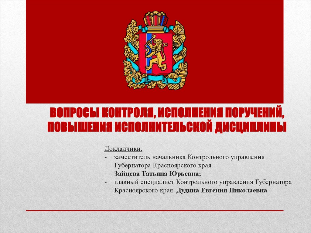 Докладчик: заместитель начальника Контрольного