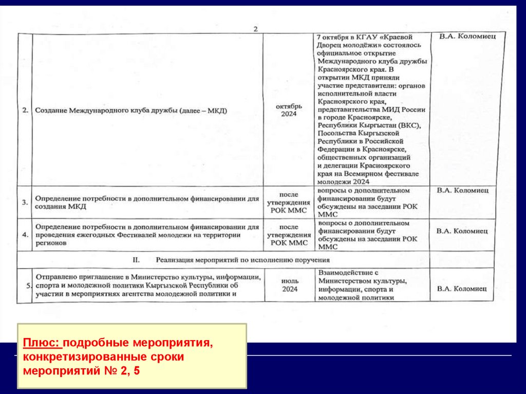 Плюс: подробные мероприятия,конкретизированные сроки
