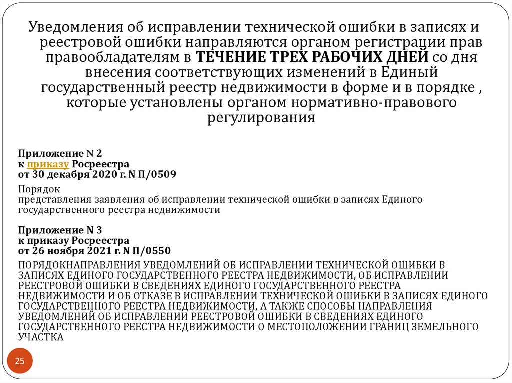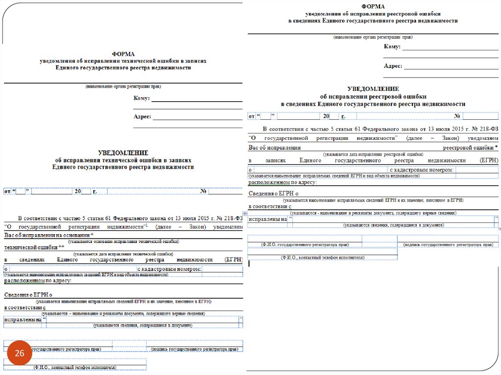Уведомления об исправлении технической ошибки в записях иреестровой ошибки направляются органом регистрации прав