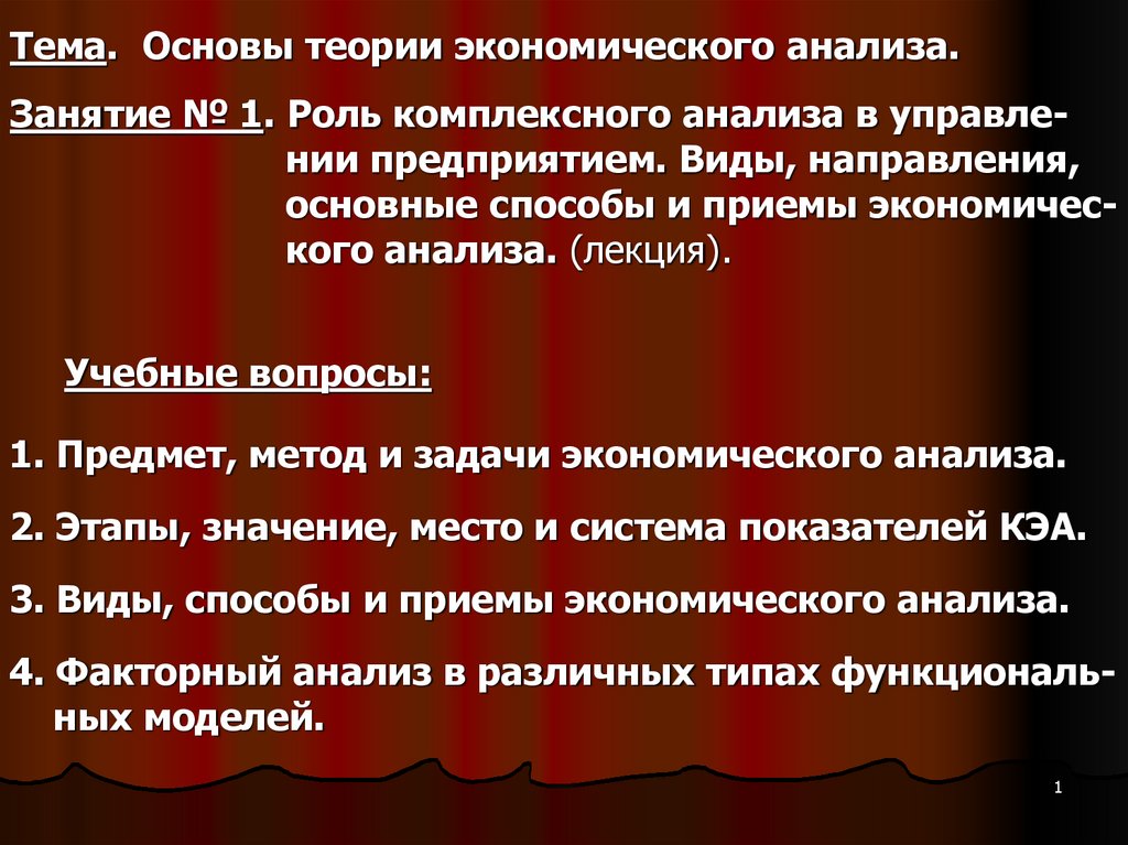 1. Тема. Основы теории экономического анализа. Занятие № 1. Роль комплексного анализа в управле- нии предприятием. Виды,