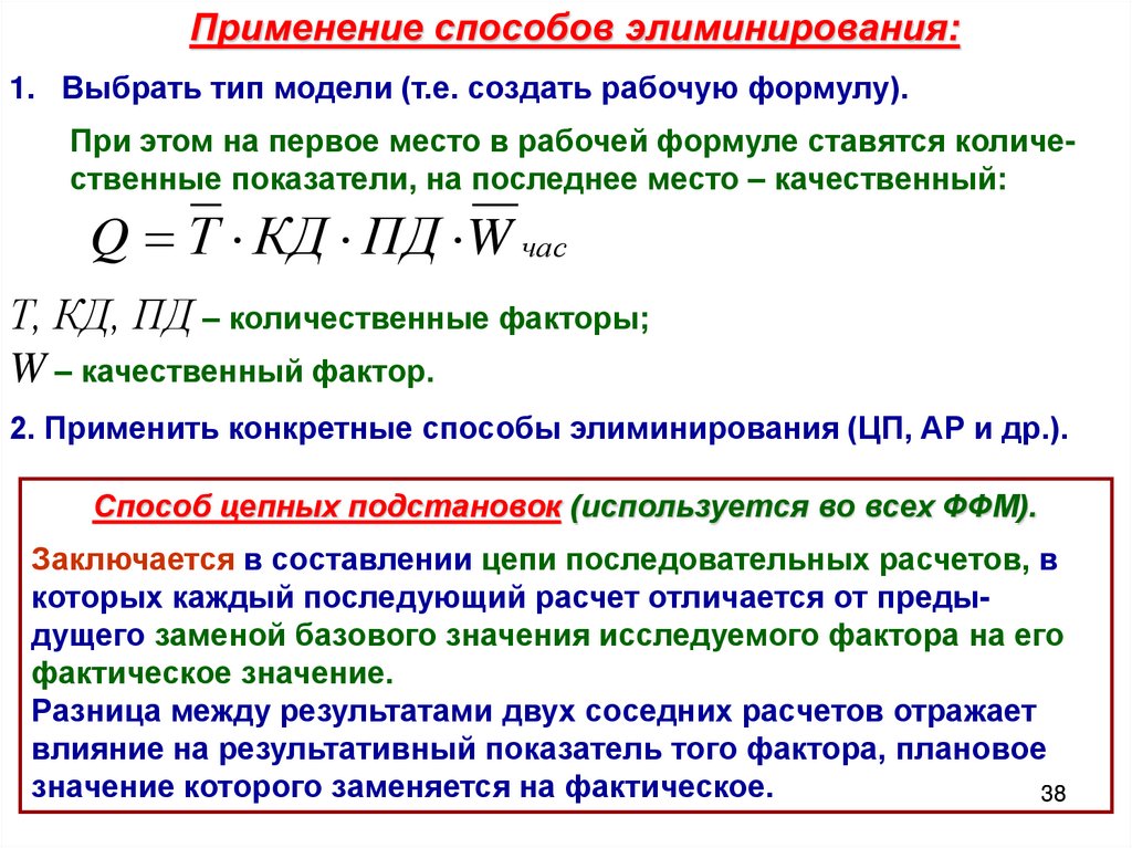 1. Определяется рабочая формула результативного показателя: