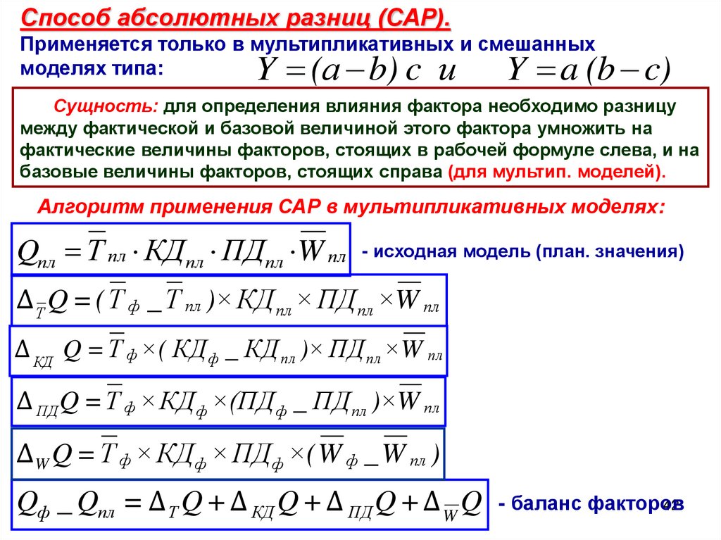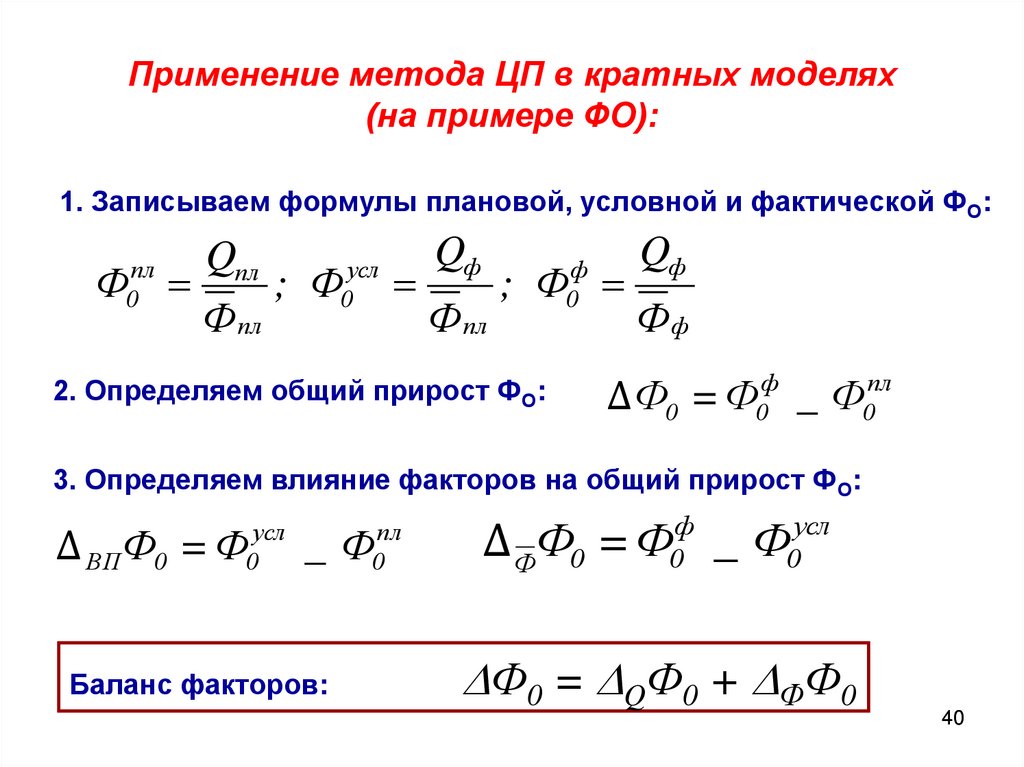 Qф _ Qпл = Δ Т Q + Δ КД Q + Δ ПД Q + Δ W Q - баланс факторов