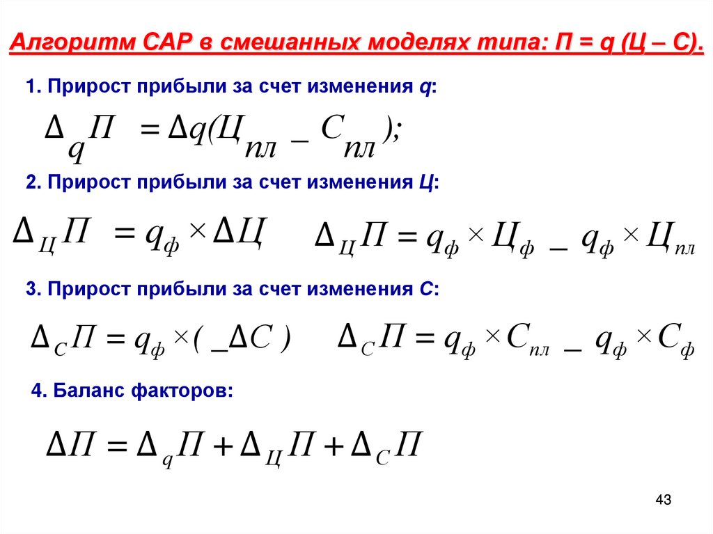 Алгоритм САР в смешанных моделях типа: П = q (Ц – С).1. Прирост прибыли за счет изменения q: