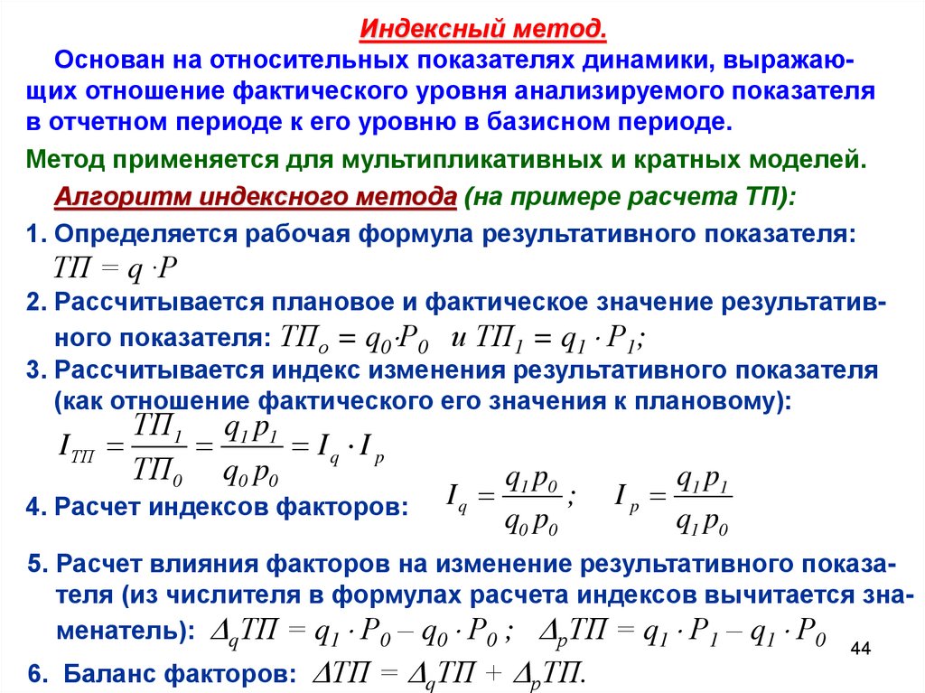 Алгоритм индексного метода (на примере расчета ТП):