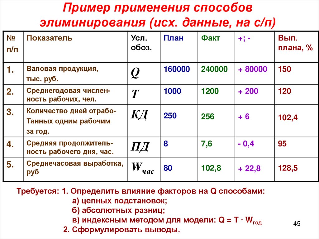 Пример применения способовэлиминирования (исх. данные, на с/п)