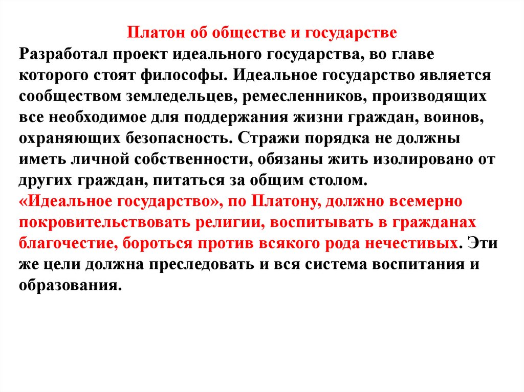 Платон об обществе и государствеРазработал проект идеального государства, во главе