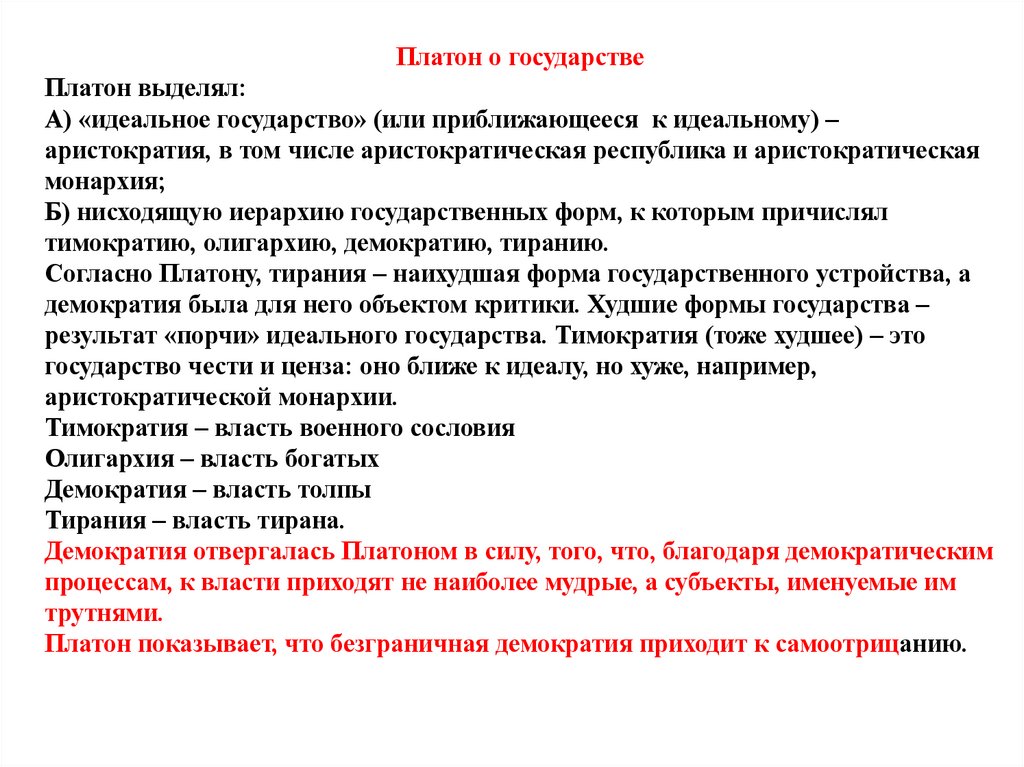 Демократия отвергалась Платоном в силу, того, что, благодаря демократическим