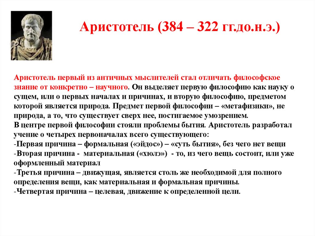 В центре первой философии стояли проблемы бытия. Аристотель разработал