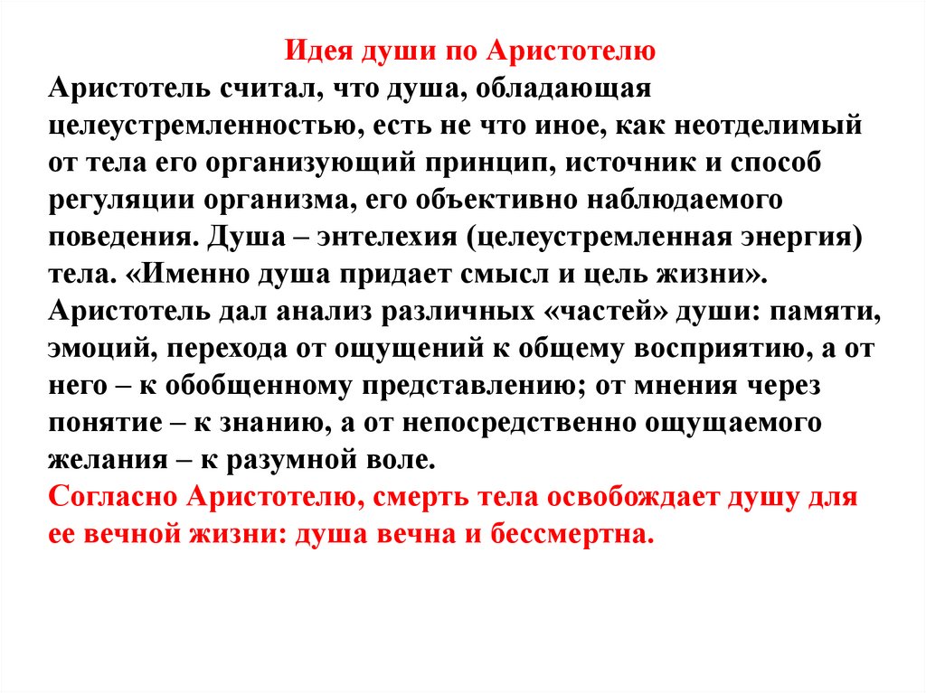 Идея души по АристотелюАристотель считал, что душа, обладающая