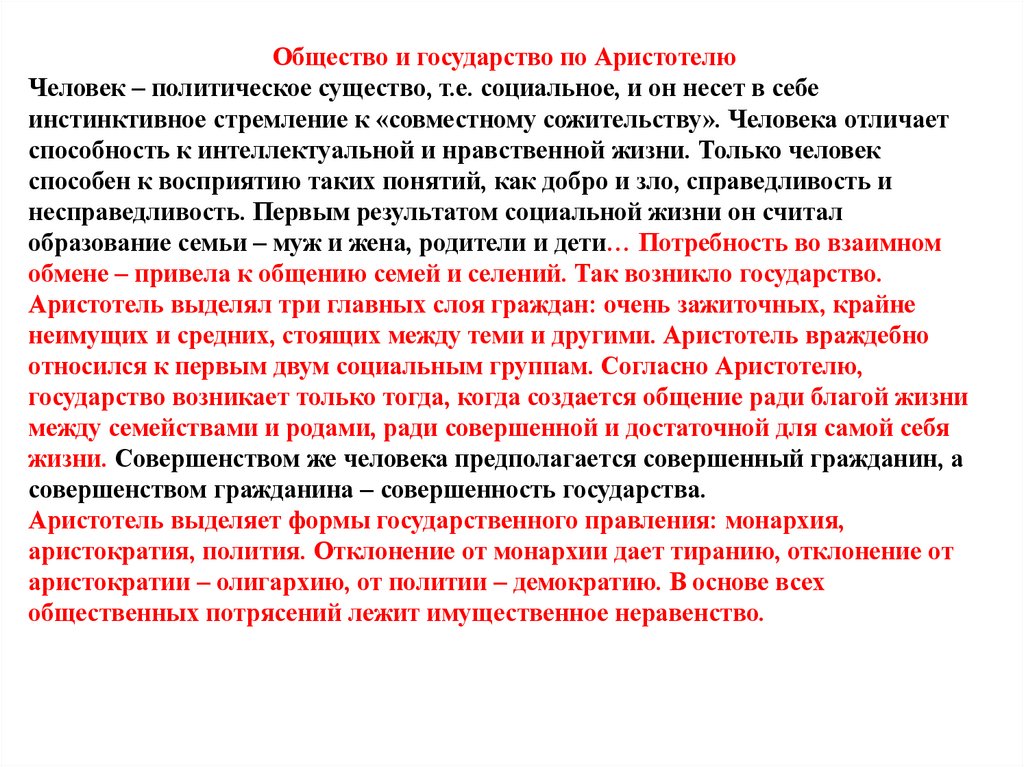 Общество и государство по АристотелюЧеловек – политическое существо, т.е. социальное, и он несет в себе