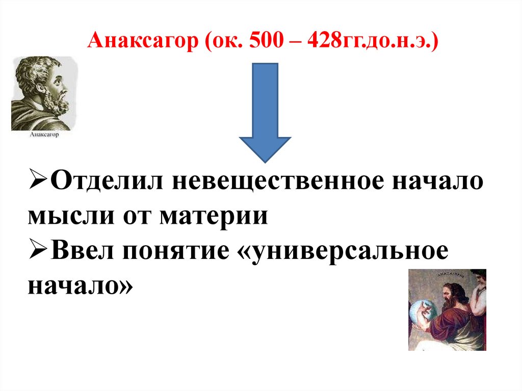 Анаксагор (ок. 500 – 428гг.до.н.э.)Отделил невещественное начало