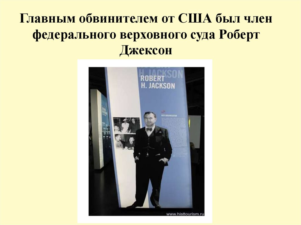 Главным обвинителем от США был членфедерального верховного суда Роберт