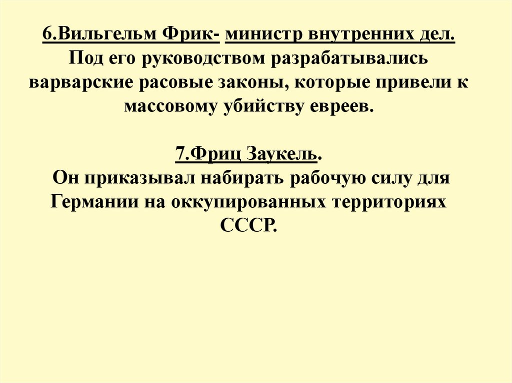 6.Вильгельм Фрик- министр внутренних дел.Под его руководством разрабатывались