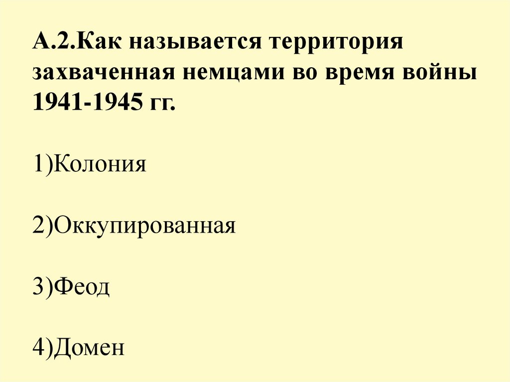 А.2.Как называется территориязахваченная немцами во время войны