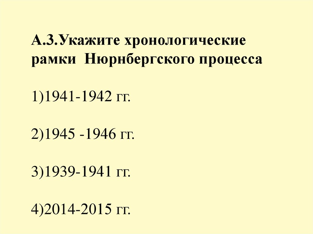 А.3.Укажите хронологическиерамки Нюрнбергского процесса