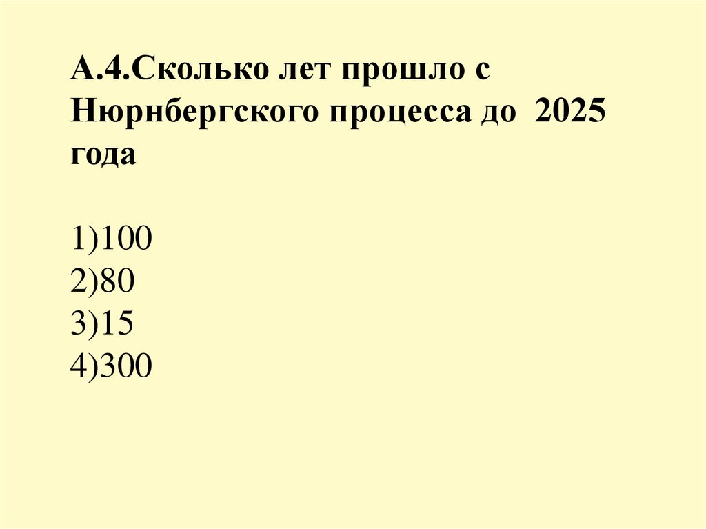 А.4.Сколько лет прошло сНюрнбергского процесса до 2025