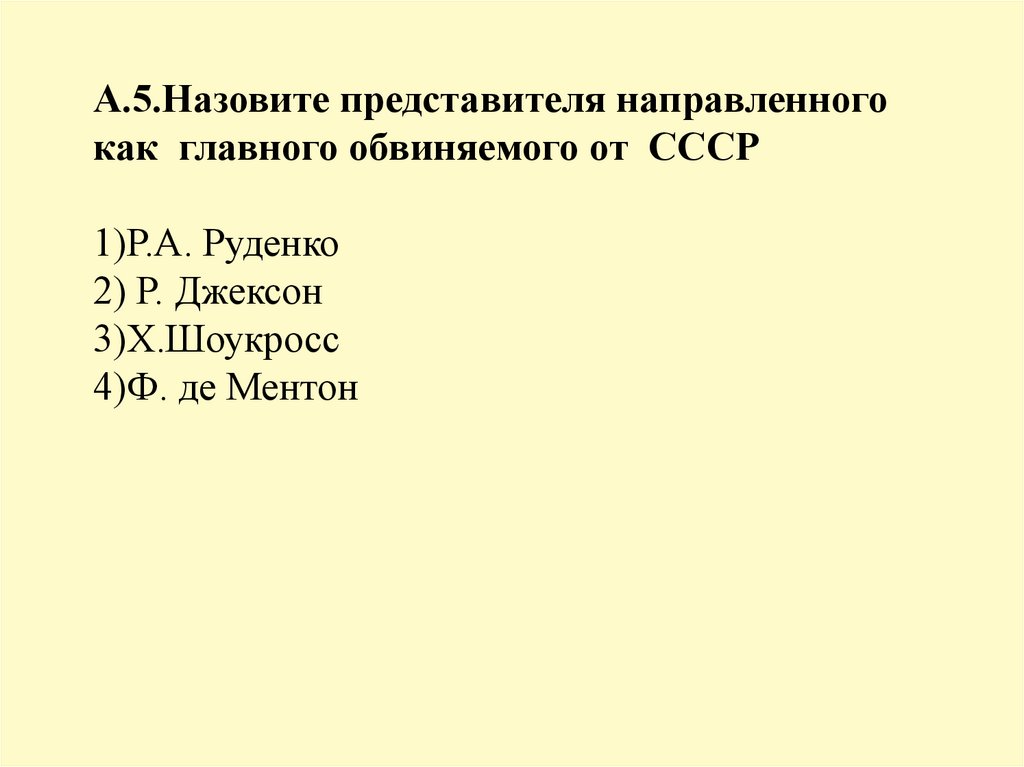 А.5.Назовите представителя направленногокак главного обвиняемого от СССР