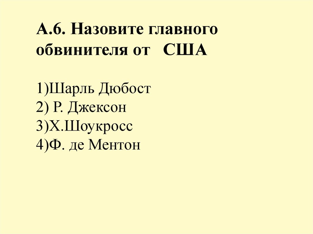А.6. Назовите главногообвинителя от США