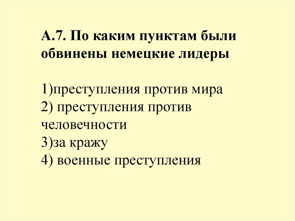 А.7. По каким пунктам былиобвинены немецкие лидеры