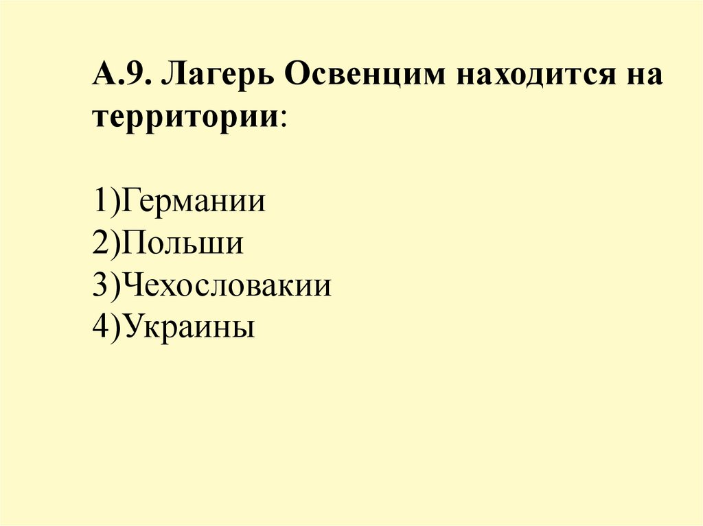 А.9. Лагерь Освенцим находится натерритории: