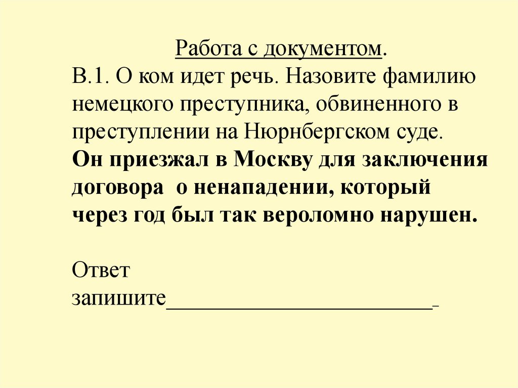 Работа с документом.В.1. О ком идет речь. Назовите фамилию