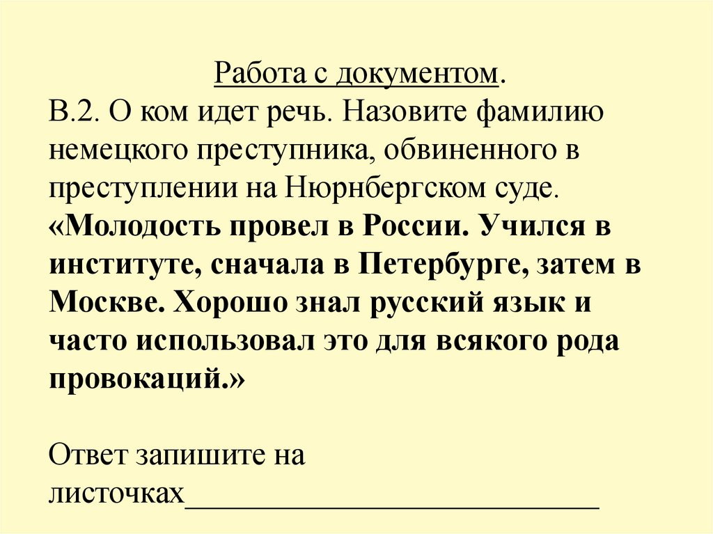 Работа с документом.В.2. О ком идет речь. Назовите фамилию