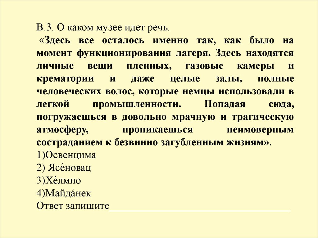 В.3. О каком музее идет речь.«Здесь все осталось именно так, как было на
